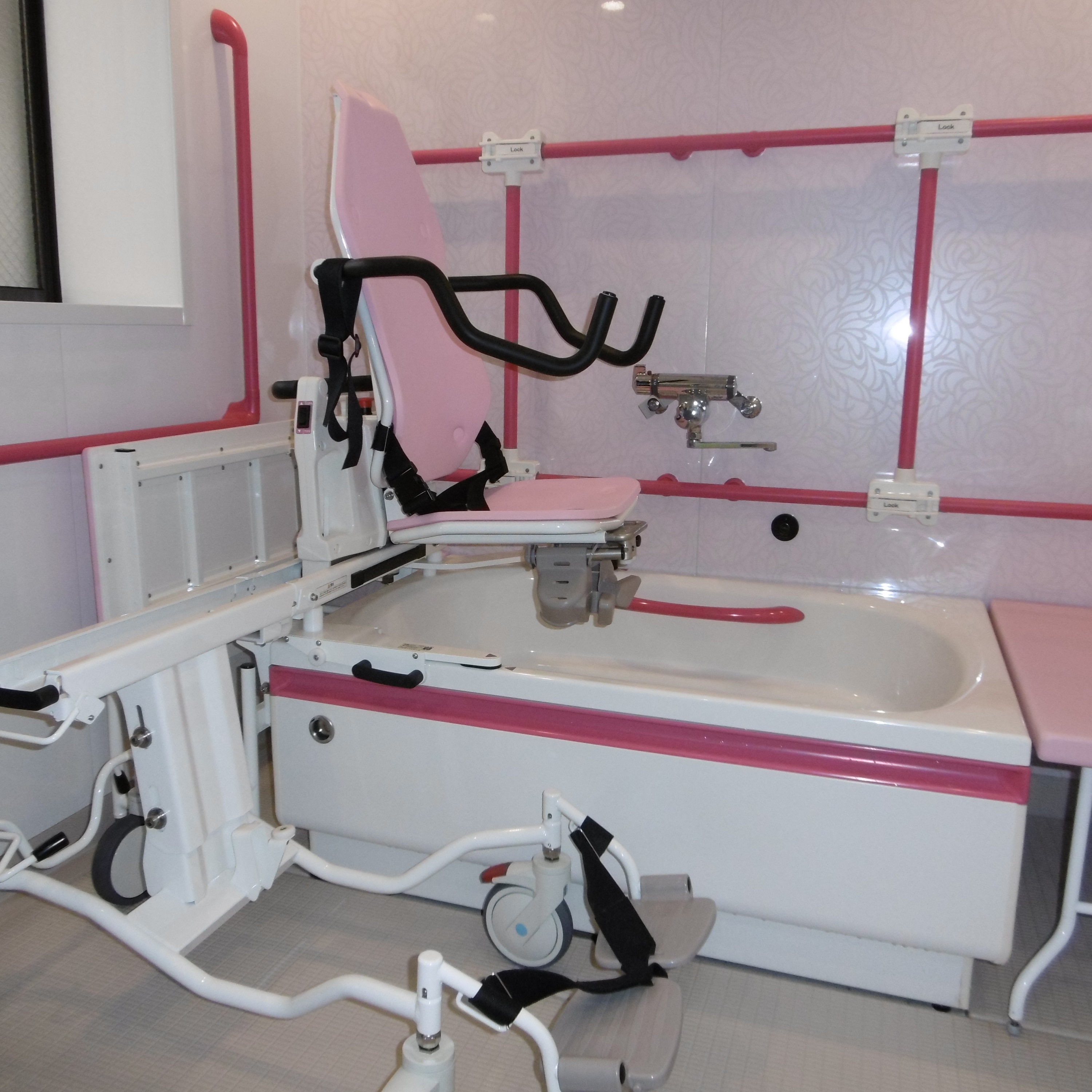 リフト浴可能な設備が完備された、広々としたお風呂です。